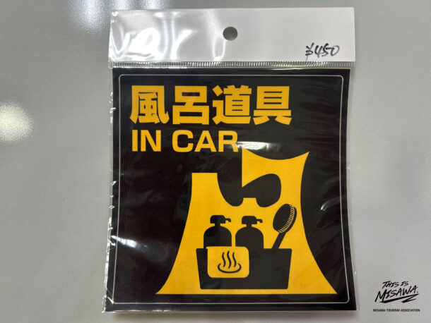 この青森県民のユニークな風呂文化をPRするために、「BABY IN CAR」をもじった「風呂道具 IN CAR ステッカー」が制作され、販売されています。